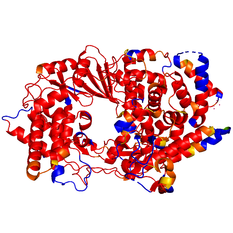 The pictures of sequence conservation mapping on structures are rendered by PyMOL.Conserved part and diverse part can be easily identified. Red means more conservative while blue means less conservative.