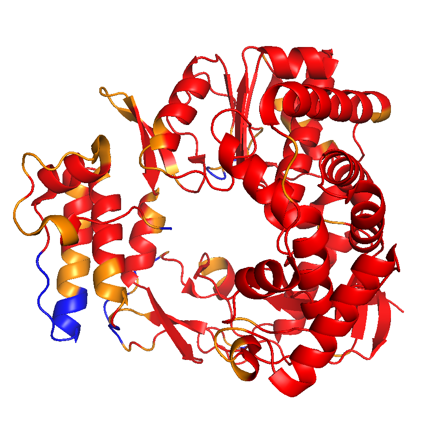 The pictures of sequence conservation mapping on structures are rendered by PyMOL.Conserved part and diverse part can be easily identified. Red means more conservative while blue means less conservative.