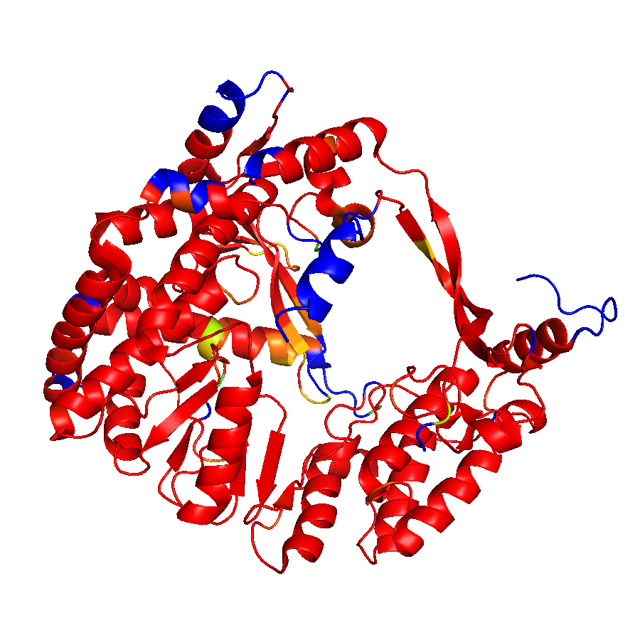 The pictures of sequence conservation mapping on structures are rendered by PyMOL.Conserved part and diverse part can be easily identified. Red means more conservative while blue means less conservative.