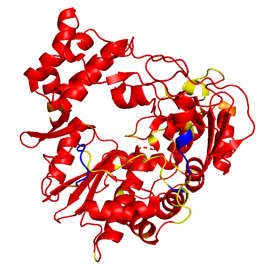 The pictures of sequence conservation mapping on structures are rendered by PyMOL.Conserved part and diverse part can be easily identified. Red means more conservative while blue means less conservative.