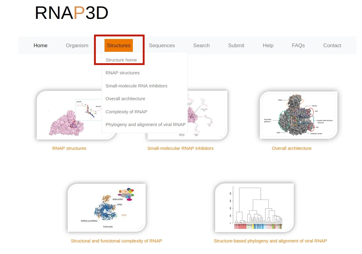 Users can learn about the diversity and conservation of RNA polymerases through the "Structure Home" page and "Sequence Home" page.