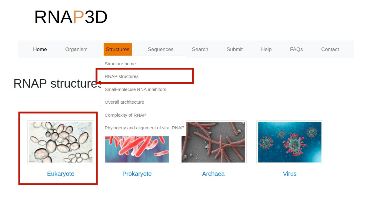 3.Browse by Taxonomy.On the “RNAP structures" page,users can browse the database by clicking the taxonomy image of interest.