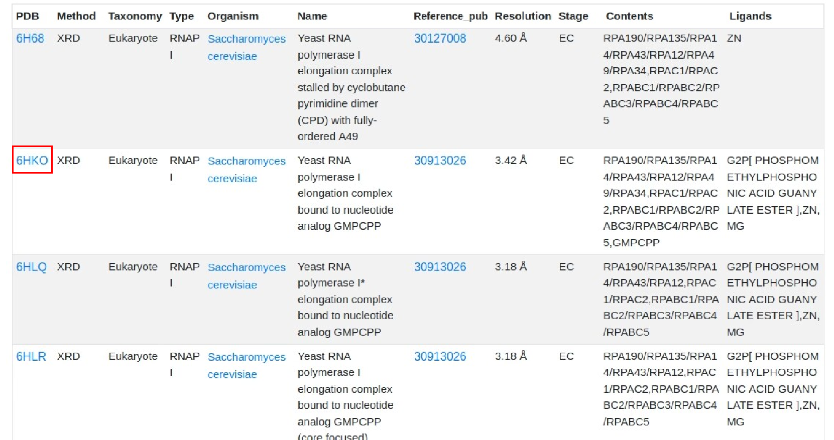 2.Browse by type.On the “Home" page,users can browse the database by clicking the types image of interest.For example, users can retrieve the detailed RNAP I information through the following steps:Eukarytoes -> RNAP I -> PDB.