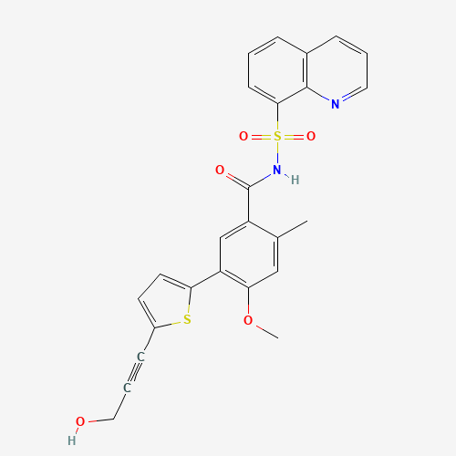 | 68E | 5I3Q | 5-[5-(3-hydroxyprop-1-yn-1-yl)thiophen-2-yl]-4-methoxy-2-methyl-N-[(quinolin-8-yl)sulfonyl]benzamide |