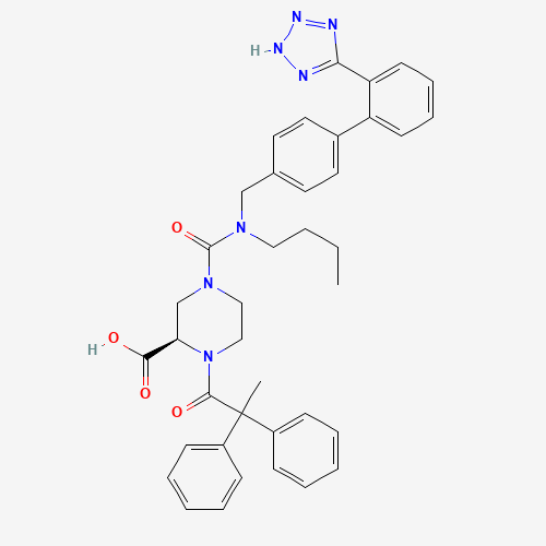| V0J | 6XD1 | (2R)-4-(butyl{[2'-(1H-tetrazol-5-yl)[1,1'-biphenyl]-4-yl]methyl}carbamoyl)-1-(2,2-diphenylpropanoyl)piperazine-2-carboxylic acid |