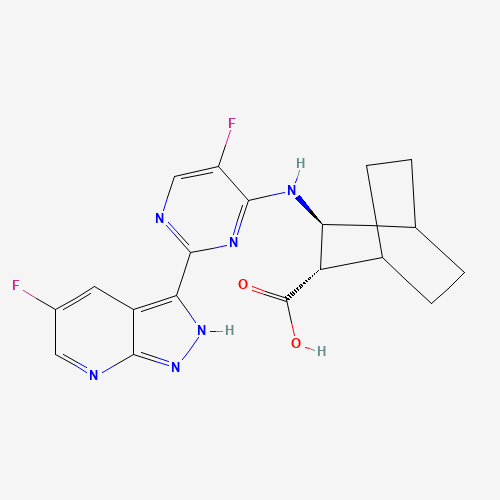 Pocket2 BYB 6EUX (2~{S},3~{S})-3-[[5-fluoranyl-2-(5-fluoranyl-1~{H}-pyrazolo[3,4-b]pyridin-3-yl)pyrimidin-4-yl]amino]bicyclo[2.2.2]octane-2-carboxylic acid