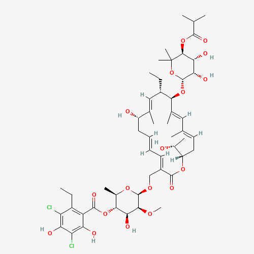 | Pocket2 | FI8 | 6BZO | [(2R,3S,4S,5S,6R)-6-[[(3E,5E,8S,9E,11S,12R,13E,15E,18S)-12-[(2R,3S,4R,5S)-3,4-dihydroxy-6,6-dimethyl-5-(2-methylpropanoyloxy)oxan-2-yl]oxy-11-ethyl-8-hydroxy-18-[(1R)-1-hydroxyethyl]-9,13,15-trimethyl-2-oxo-1-oxacyclooctadeca-3,5,9,13,15-pentaen-3-yl]methoxy]-4-hydroxy-5-methoxy-2-methyloxan-3-yl] 3,5-dichloro-2-ethyl-4,6-dihydroxybenzoate | Fidaxomicin |