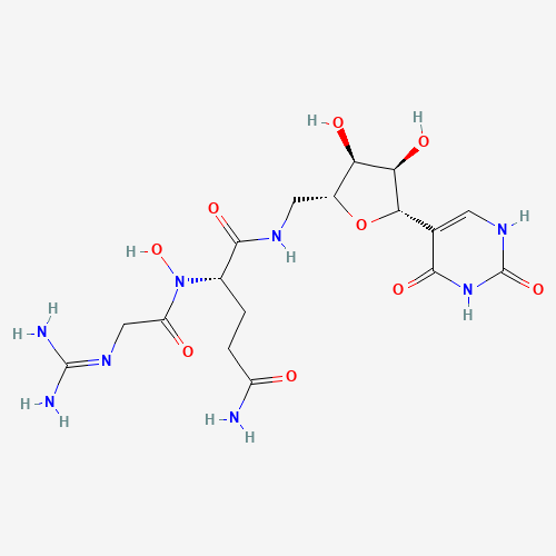| Pocket2 | PUM | 5X21 | (1S)-1,4-anhydro-5-[(N-carbamimidoylglycyl-N~2~-hydroxy-L-glutaminyl)amino]-5-deoxy-1-(2,4-dioxo-1,2,3,4-tetrahydropyrimidin-5-yl)-D-ribitol | Pseudouridimycin |