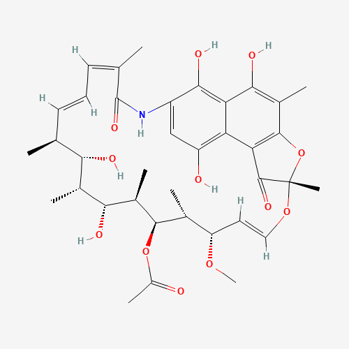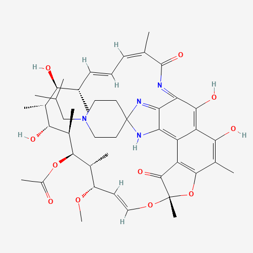 | RBT | 2A68 | [(7S,9E,11S,12R,13S,14R,15R,16R,17S,18S,19E,21Z)-2,15,17,32-tetrahydroxy-11-methoxy-3,7,12,14,16,18,22-heptamethyl-1'-(2-methylpropyl)-6,23-dioxospiro[8,33-dioxa-24,27,29-triazapentacyclo[23.6.1.14,7.05,31.026,30]tritriaconta-1(32),2,4,9,19,21,24,26,30-nonaene-28,4'-piperidine]-13-yl] acetate | Rifabutin |